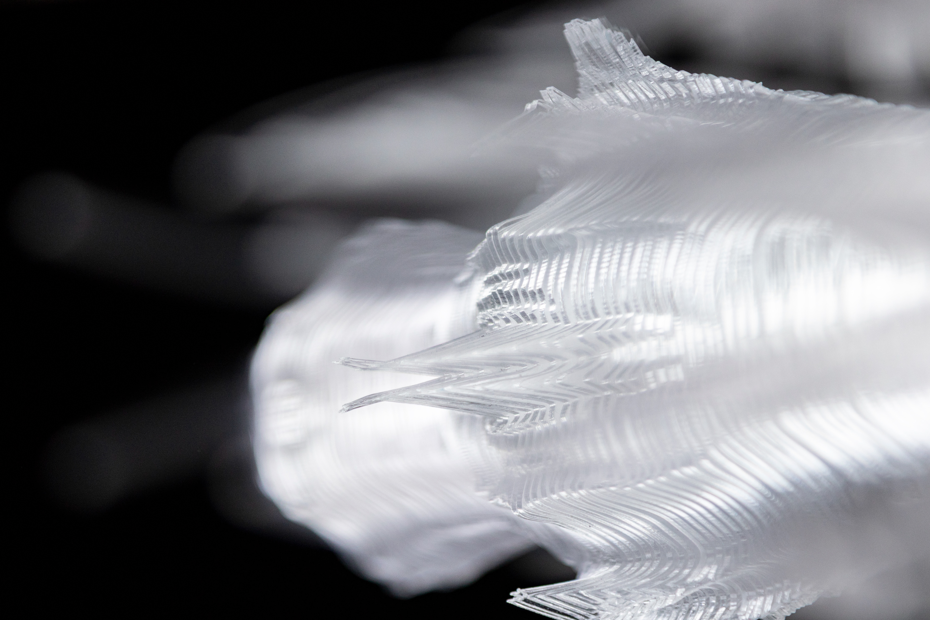 My Sculpture – At the center of the tower’s spatial volume stands a custom-designed sculpture, composed of 340 metamorphically shaped layers of plexiglass and embedded with light. This abstract future-body points to the potential of the transcendent and the future within the here and now.